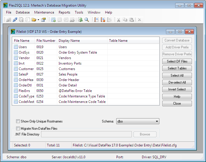 The Flex2SQL Unicode Migration Utility contains all the features that a developer needs to migrate an existing DataFlex application to a SQL backend or to integrate non-DataFlex tables into his/her application. It lets you set global preferences for script generation, file casing, field mappings, date handling, and more. Custom preferences can also be selected for a specific migration. A built-in browser lets you examine both DataFlex and converted tables. It can also create new tables and indexes or restructure existing tables and indexes.